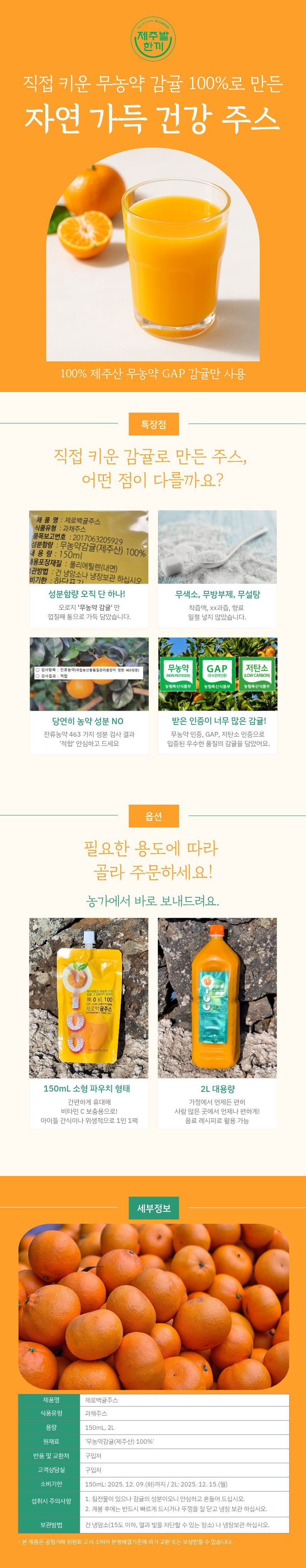 <제주 밭한끼> 100% 귤 착즙주스